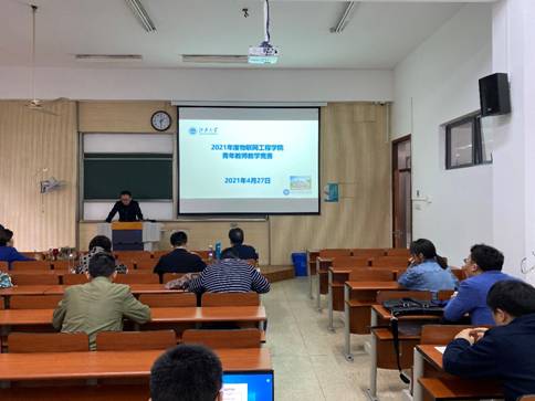 于4月27日下午,在教学楼1C105教室,举办了学院青年教师教学竞赛。院党委书记程捷音出席活动;校教学督导于凤芹,院教学督导徐颖秦、程正务,以及副院长陶洪峰四位教师受邀担任评委。竞赛由院分工会副主席费赓柢主持,七位青年教师参加了比赛,近五年入职新教师观摩学习。