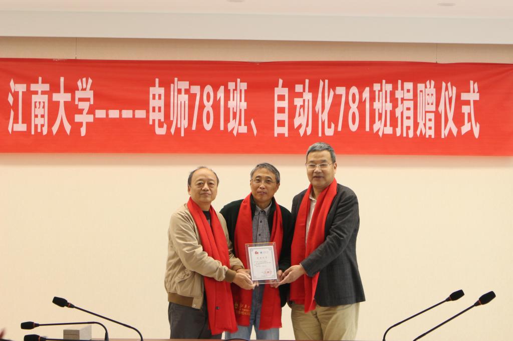 甲子校庆,表达对母校和学院的祝福和感谢。纪志成为校友代表朱又迈、唐育正颁发了捐赠证书。
