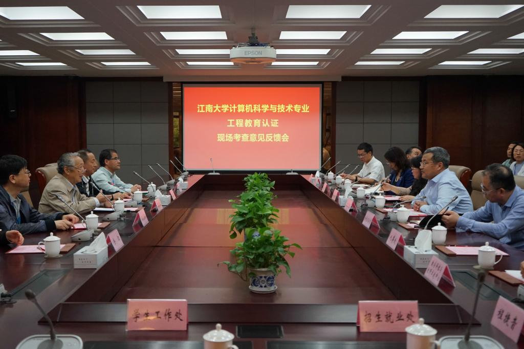 5月22日下午,考查意见反馈会在行政楼B305会议室举行。周明陶代表专家组对现场考查情况进行了通报,高度评价了计算机科学与技术专业的办学水平和质量,并中肯指出了存在的问题与不足。纪志成代表学校对各位专家的现场考查指导表示衷心感谢,他指出,学校一直以来都非常重视工程教育认证工作,将其作为推动专业建设与改革、保障工程人才培养质量的重要抓手。计算机科学与技术专业将以认证为契机,按照专家组的意见和建议,进一步加大教学投入,坚持持续改进,确保学生培养质量,提升专业总体建设水平。