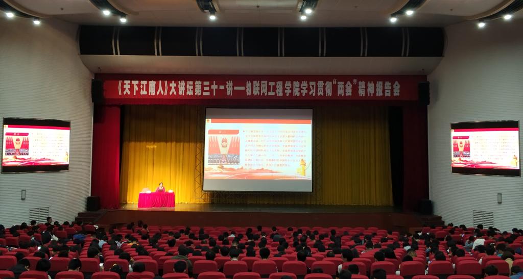 赵伟在报告中简要介绍了“两会”概况。她指出,十三届全国人大一次会议和全国政协十三届一次会议,是党的十九大之后召开的第一次“两会”,大会对宪法修正案、监察法草案、国务院机构改革方案、新一届国家机构换届人事安排等重大问题进行了审议,新的时代坐标鲜明,具有特殊和重要意义。大会高举习近平新时代中国特色社会主义思想伟大旗帜,全面总结了过去五年中国特色社会主义事业取得的全方位、开创性成就,发生的深层次、根本性变革。代表们牢固树立“四个意识”,坚定“四个自信”,讲政治、顾大局,积极建言献策。江苏代表团149名代表参加了此次会议,向大会提交了15项议案和351项建议,赵伟代表江苏代表团作了题为“新时代呼唤创业新姿态”的发言。最后,赵伟和同学们分享了会场环境、与领导人见面、小组讨论、投票时刻等花絮。