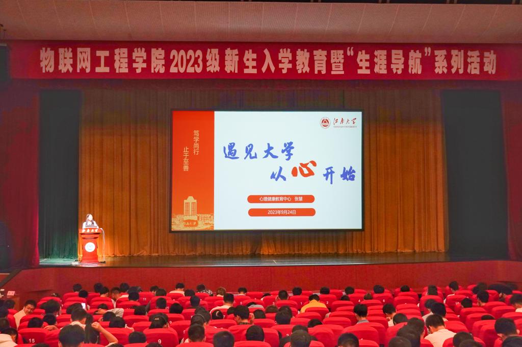于9月24日下午在文浩馆观众厅举办《遇见大学 从心开始》心理专题讲座。讲座由心理健康中心主任张慧主讲,学院2023级全体本科生、研究生参加活动。
