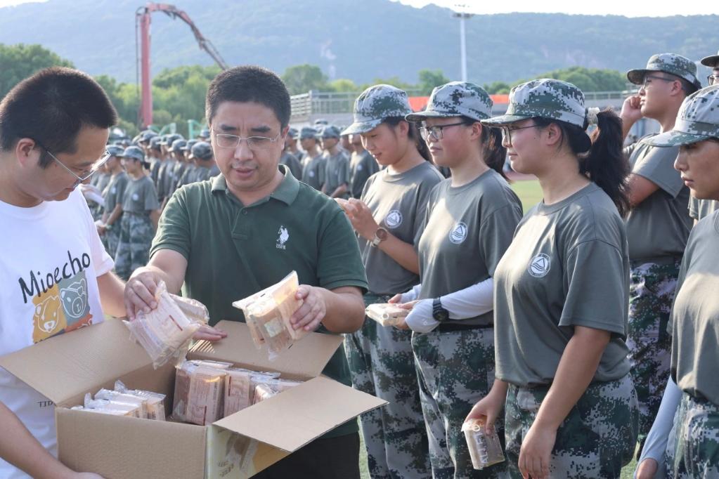 最后,学院领导与班主任老师们为每一位参训学生递上精心准备的慰问品,把对学子的牵挂与关怀实实在在送到大家手中。温暖的叮嘱、殷切的鼓励萦绕在训练场,领导们的亲切关怀如飒风拂面,让全体参训师生倍受鼓舞。同学们纷纷表示,定将学院给予的厚望转化为奋力拼搏的动力,当以更加昂扬的激情与斗志完成军训任务。