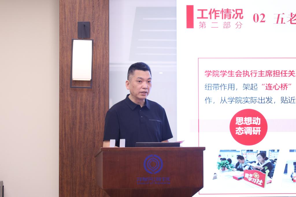 张华围绕“领导班子建设好、五老作用发挥好、制度建设执行好、积极探索创新好、活动经常效果好”五个方面,详细汇报了学院关工委的建设情况,对关工委老同志们长期以来对学院工作的关心支持和悉心指导表示衷心感谢,并结合学院实际提出了今后工作的思路与方向。