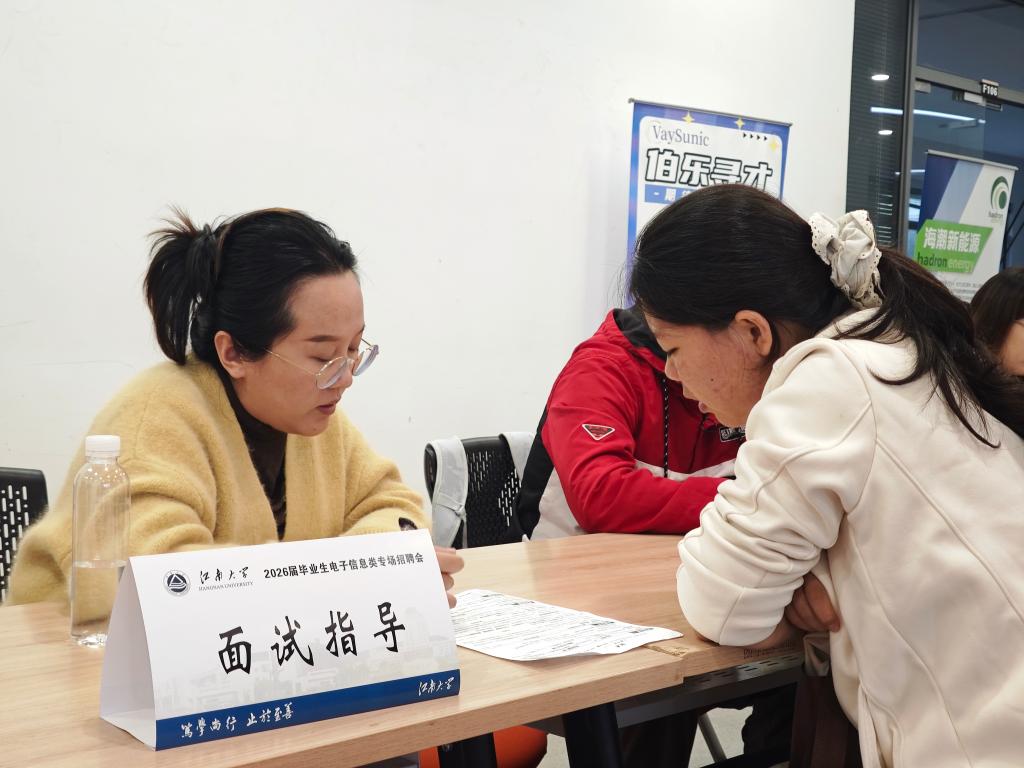 初冬蓄势扬帆起,蠡湖引航共筑梦。11月7日下午,av片 2026届毕业生电子信息类专场校园招聘会在蠡湖校区北区大学生活动中心F105成功举办。本次招聘会由av片 、人工智能与计算机学院和集成电路学院联合举办,吸引了包括华为、小米、中国电子科技集团、长虹智能装备、村田电子、中天钢铁、苏南机场集团等66家知名企业、科研院所参与,涵盖物联网、自动控制、电气工程、人工智能、软件工程、集成电路等多个电子信息前沿领域,共提供优质岗位1800余个,吸引了近千名毕业生到场参与。