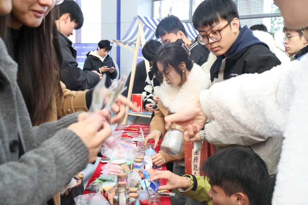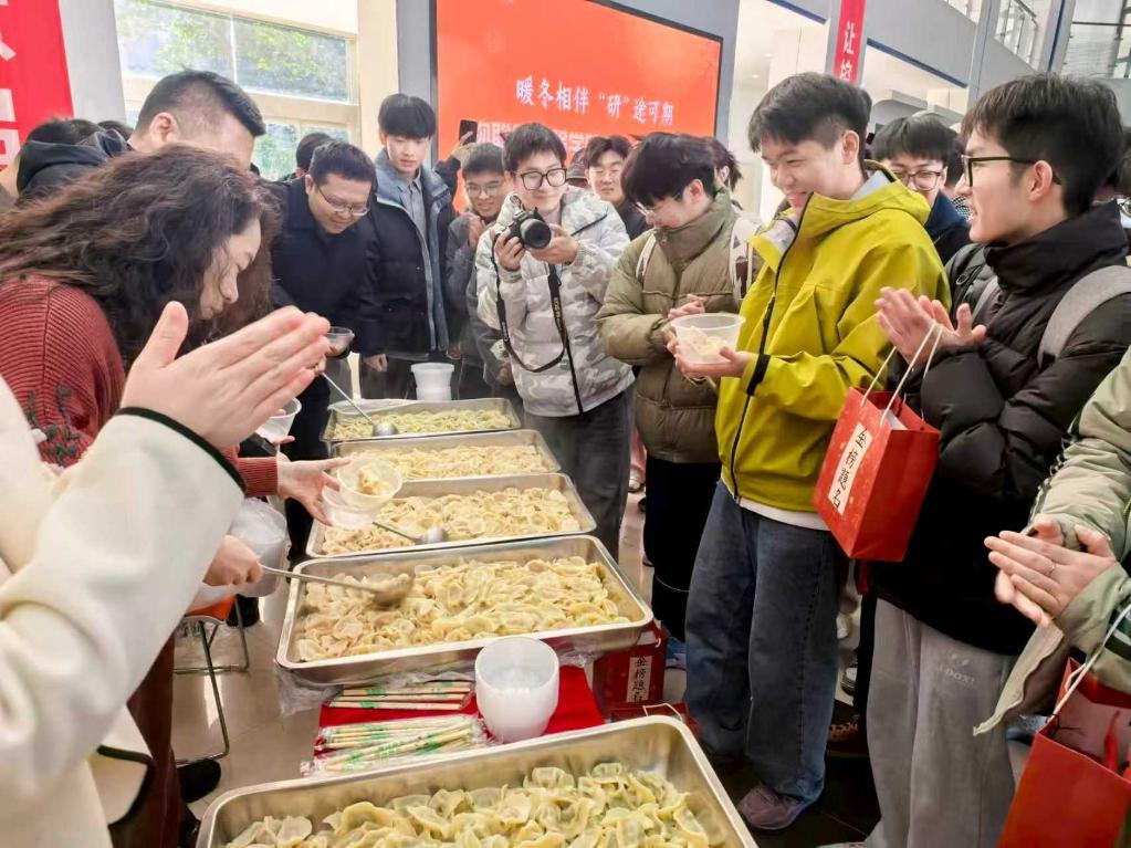 学院领导同班主任、辅导员老师为考研同学们送上学院精心准备的专属慰问礼包,每一件物品都蕴含着巧思与祝福,承载着学院对考研学子们的深切祝福和温暖关怀。印有姓名的定制可口可乐,寄托"独占鳌头"的期许;好丽友派象征研途挚友的温暖相伴;文具套装寓意"笔下生花"的才思泉涌;棒棒糖传递"越来越棒"的甜美祝愿;旺仔牛奶糖带来好运加持的活力能量;"纸定有你"便签本镌刻着金榜题名的坚定信念;更有一封来自辅导员满载温情的加油信,以“稳住心态、智慧冲刺”的贴心指导,为学子们注入了坚定的精神力量。活动现场,学院领导和老师们为考研学子分发了热腾腾的饺子,饺子寓意“骄子”,愿同学们能够不惧困难,踏实前行,终成“骄子”。