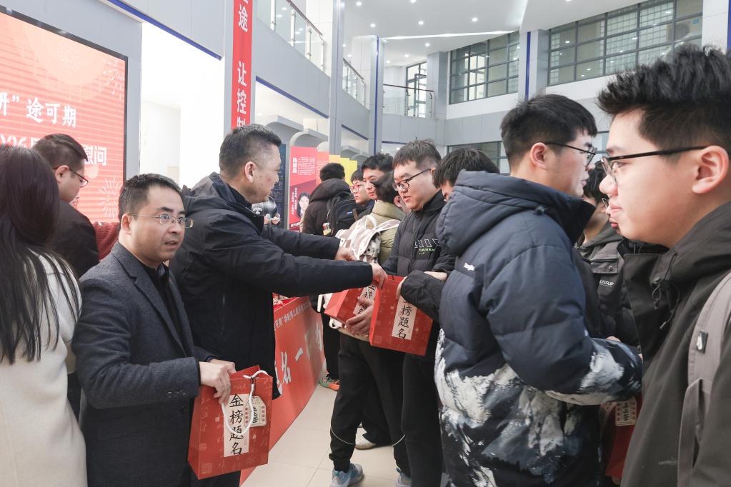 张华向全体考研学子致以亲切关怀与鼓励。他强调,考研不仅是知识水平的检验,更是意志力的锤炼,需要同学们以坚定的自制力、持久的坚持力与强大的心理韧性迎接挑战。他勉励学子们在冲刺阶段坚守初心本心,注重科学备考策略,保持踏实作风,合理调节身心状态,以饱满精神面貌迎战考场,全力冲刺目标。他表示,学院将始终作为学子们最坚实的后盾,全体教师将为考研学子保驾护航,助力学子勇攀学术高峰,实现研途梦想。随后,各位学院领导和老师们也一同为考研学子送上殷切期望与祝福。他们用坚定的眼神和温暖的话语,为学子们注入强大的精神动力,勉励大家坚定信念、沉着应考。