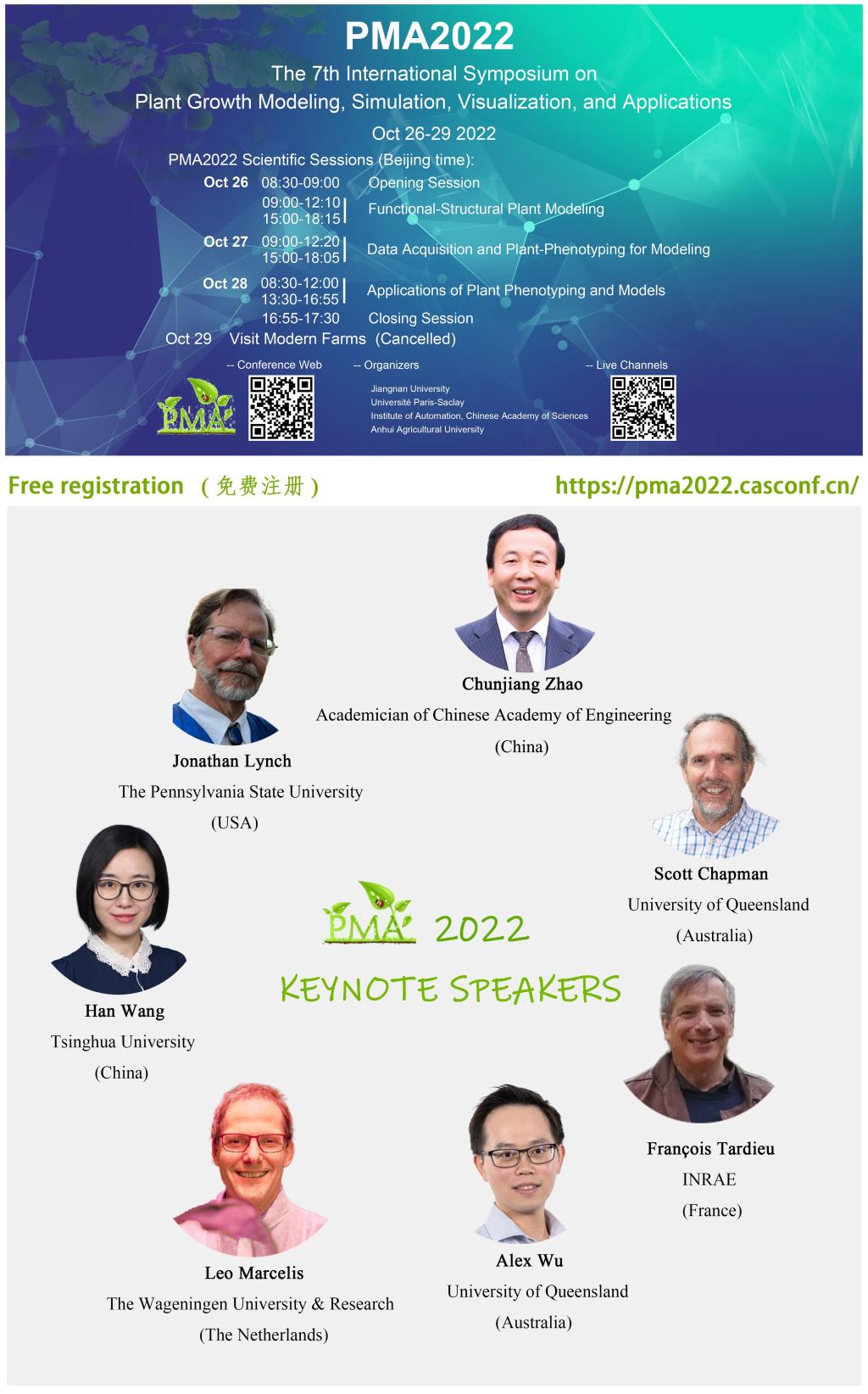 第七届植物生长建模、仿真、可视化与应用国际研讨会(PMA2022)将于2022年10月26日-29日以线上的方式举行。PMA2022由av片