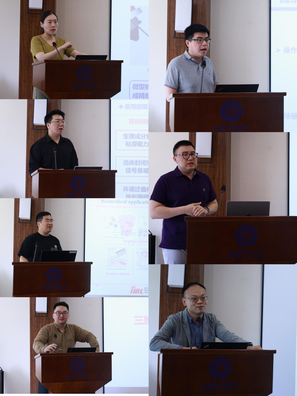 此次论坛设置了七场学术报告。中国科学院深圳先进技术研究院徐天添研究员作了题为《面向精准医疗的磁驱动微型机器人》的主题报告,围绕软体薄膜微型机器人的运动控制,深入介绍了磁驱动软体薄膜微型机器人的视觉伺服三维路径跟踪控制,以及适应复杂环境的多模态运动机制;北京理工大学王化平教授在《拟生物组织磁驱微机器人》主题报告中,介绍了通过模拟细菌、水母等水生生物行为,将拟生物组织微机器人作为拥有理想生物学特性的软体执行器,研究其高效运动、自主决策及多模态运动控制方法,为癌症、血栓等疾病精准靶向治疗提供了新思路;合肥工业大学李霄剑研究员作《三维感知驱动的微创手术智能化》主题报告,讲述了术中场景的全信息数字孪生模型的学术概念,并以术中实时三维重构为核心,介绍了术中精准三维测量、术中标注自主跟踪、术中器械位姿估计、手术全场景三维重构等技术创新,展示了这些技术在临床推广应用的情况;大连理工大学戴昌盛教授作了题为《微纳机器人与细胞手术》的主题报告,介绍了微纳机器人在细胞操作和微创手术上的应用,面向辅助生殖,开发的机器人技术实现了对精子和卵细胞的精准操作,攻克了细胞操作机器人中细胞“变形大”“伤害高”“检测难”三大难题;香港中文大学深圳校区俞江帆助理教授在《仿生微尺度机器人及其集群的生物医疗应用》主题报告中,展示了多种微机器人在正常手段难以到达的狭小空间,包括生物体内发挥作用,尤其在无创或是微创诊断和治疗方面的应用案例;清华大学深圳国际研究生院曲钧天助理教授作《智能水下巡航与多模态柔顺抓取研究》主题报告,所在研究团队在海洋软体机器人和水下智能柔性抓取方面取得了一系列研究成果;苏州科技大学牛福洲副教授在《磁驱系统及特种工程机械》的主题报告中,着重介绍了多种磁驱系统的构建及应用,并展示了3种特种工程机械的研制。
