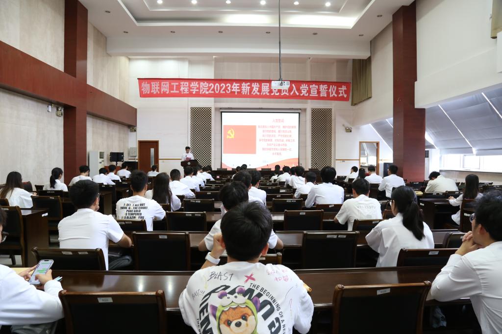 在D328会议室举行“七一”新党员宣誓仪式暨专题党课学习。学院党委书记耿向阳、副书记兼副院长孔丽丹、辅导员代表李灿以及45名新发展学生党员参加活动。大会由学院专职组织员孙小芳主持。