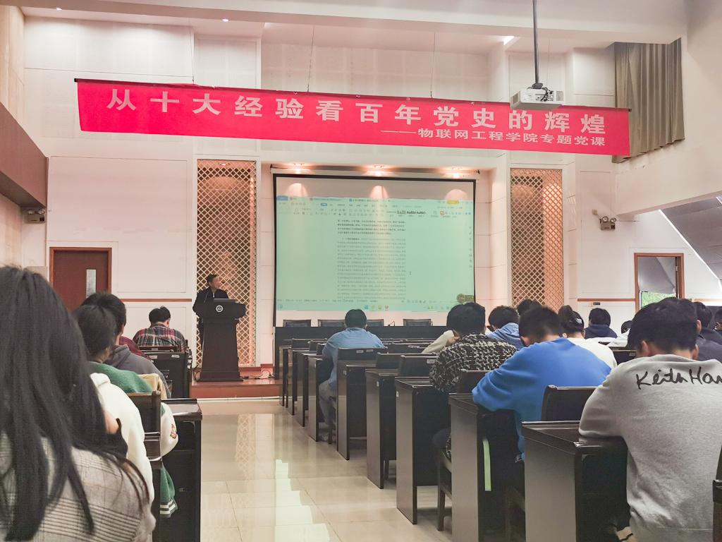 党委特邀学院关工委委员赵曾贻讲授“从十大经验看百年党史的辉煌”主题党课。学院150余名师生在学院D328会议室聆听了本次党课。活动由辅导员李灿主持。