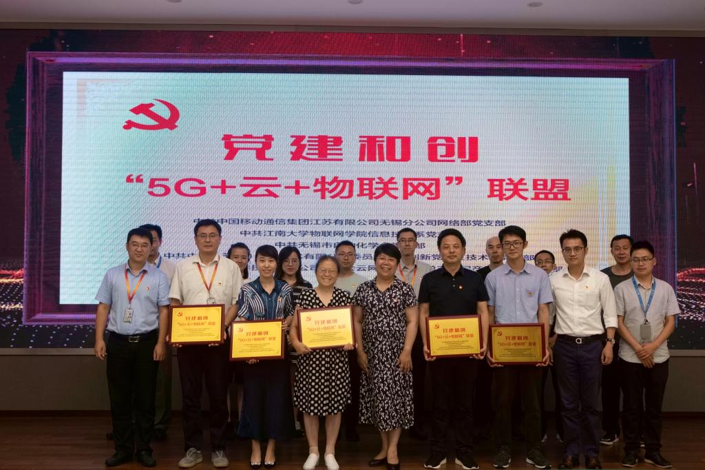 信息技术党支部联合无锡市自动化学会党支部、中国移动通信集团江苏有限公司无锡分公司网络部支部委员会、中移(苏州)软件技术有限公司委员会云网产品部党总支云网产品部第三党支部、中移(苏州)软件技术有限公司委员会技术创新党总支技术部党支部,联合开展了“5G+云+物联网”联盟党建和创主题实践活动,现场完成了揭牌仪式和签约。