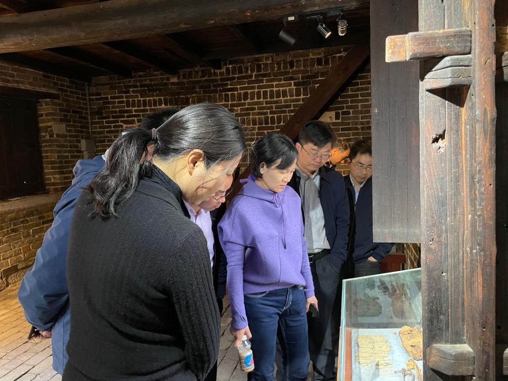 10日,中心组成员首先参观了位于山东济宁市曲阜师范大学的中国教师博物馆。该馆是全国首座也是唯一教师文化主题的综合性博物馆,入选教育部师德师风建设基地。中心组一行参观了“先师孔子”“教育文物”“教师典范”等为主题的陈列,从明代至今不同时期教材课本到功能各异的教具仪器,从人民教育家陶行知先生的信札到“时代楷模”黄大年教授的手稿,让人驻足流连。党委委员们在观物、知史、见贤、明道的过程中,滋养了立德树人初心、坚定了弘文励教使命。