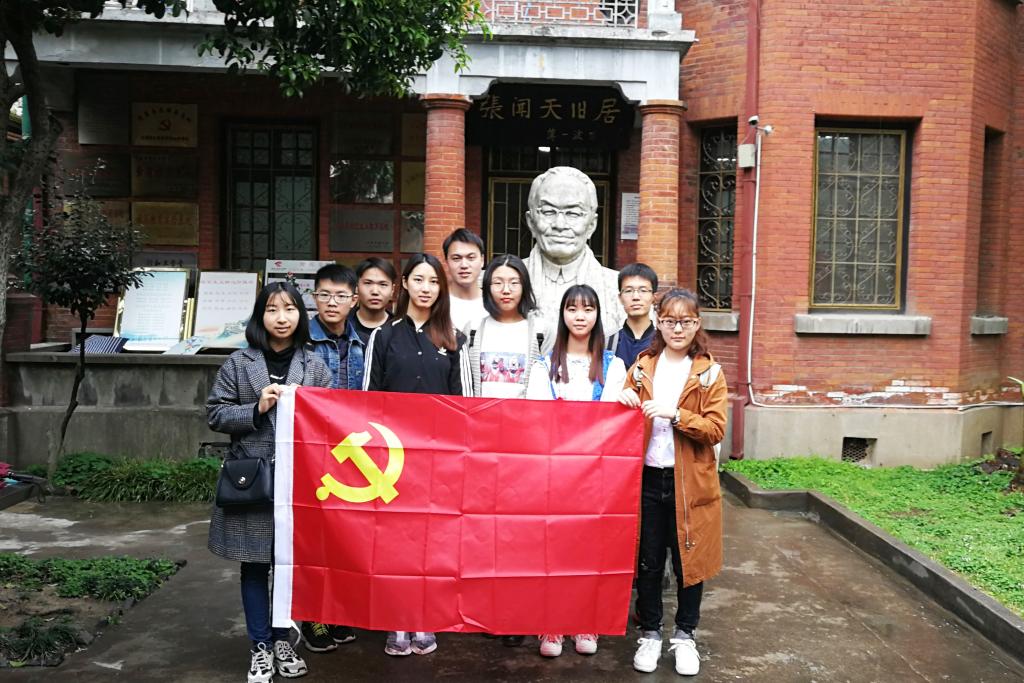 第35期分党校培训班的部分学员在小组长董旭冉的带领下来到了张闻天旧居进行参观学习。虽然一直下着小雨,但同学们参观的热情依旧高涨。