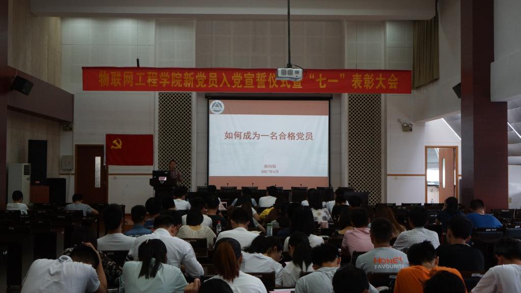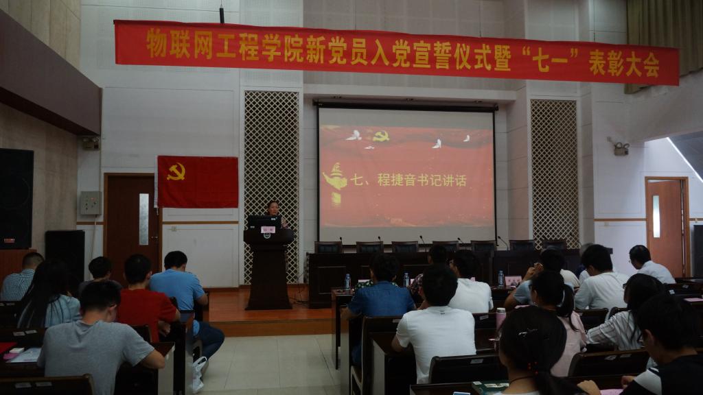 新党员入党宣誓仪式暨“七一”表彰大会在学院D328举行。学院党委书记程捷音、党委副书记耿向阳、分团委书记胡娟、关工委老师燕庆明、童建森、张平以及辅导员宋炜出席了本次大会,77名预备党员以及荣获学校、学院优秀学生党员称号和学院先进集体的获奖代表参加了大会,大会由学院党委秘书孙颖主持。