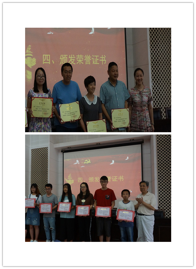 优秀共产党员,何劲等14名学生党员荣获物联网学院优秀学生党员,14、15本科联合第二党支部荣获院优秀党支部,“以精神之钙、德性之美、廉洁之风、奉献之情打造合格党员名片”荣获学院最佳党日活动,党委书记程捷音,关工委老师燕庆明、童建森、张平分别为他们颁发获奖证书并合影留念。