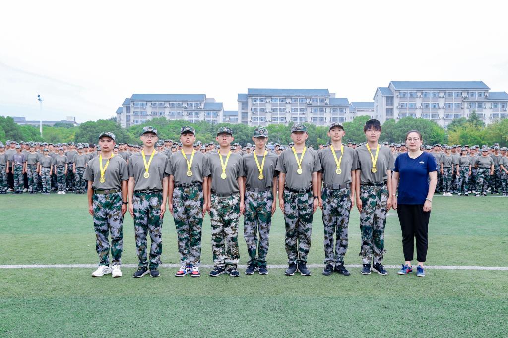 随后,参训学生代表组成分列式方阵,在教官统一指挥下做汇报表演。铿锵有力的口号伴随着整齐划一的动作,彰显了物联学子昂扬向上的精神风貌,赢得了热烈掌声。