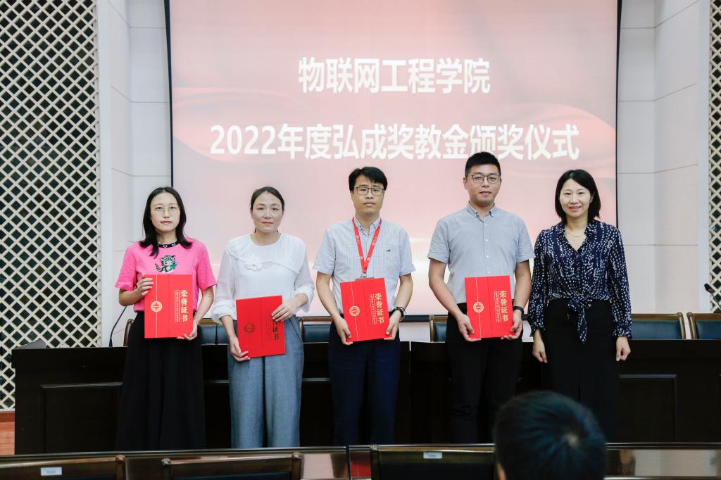 弘成奖教金是由弘成科技发展有限公司设立,旨在奖励为学院发展建设做出重要贡献或取得突破性、标志性成果的个人和集体,分别设有党建创新奖、科技突破奖、教育教学奖、管理服务奖、校园文体奖等奖项。2022年度“弘成奖教金”共设一等奖4项、二等奖8项、三等奖12项,其中,一等奖分别授予大学生创新实践基地党支部(入选全国党建样板支部)、“物联网技术应用”教育部工程研究中心(通过评估并获良好等级)、许德智老师(荣获国家优秀青年科学基金)和院乒乓球队(荣获av片