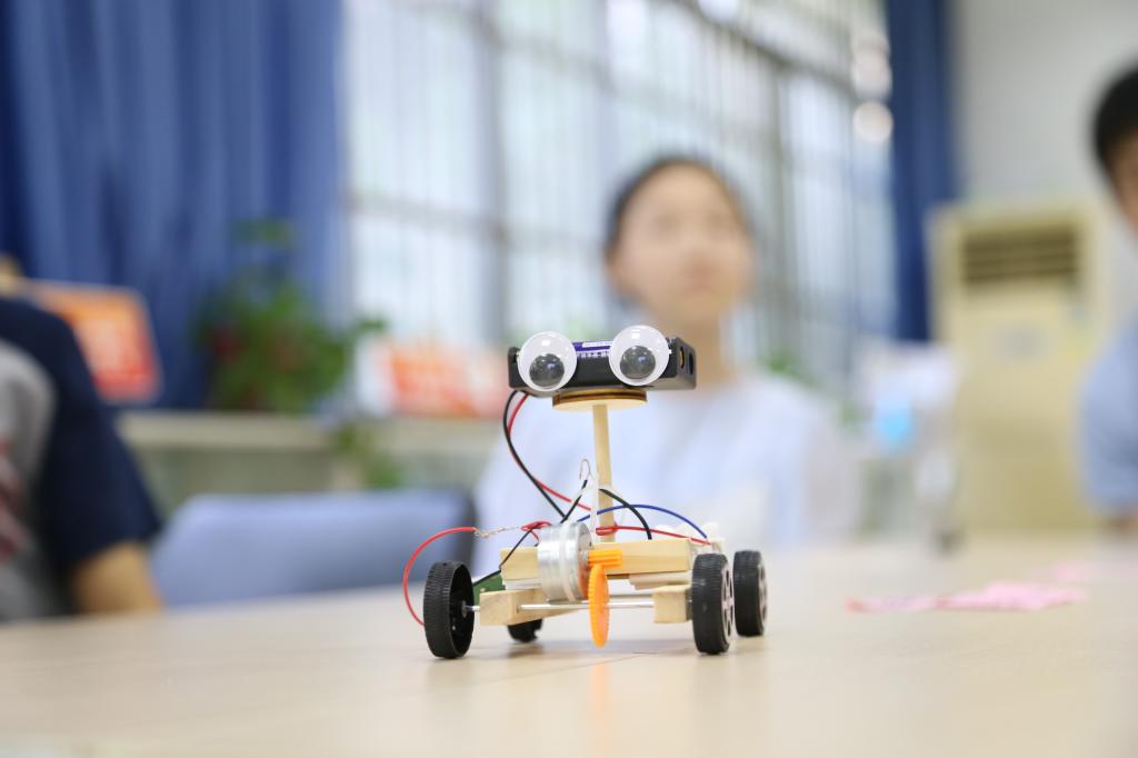 为了让小朋友们更真实地体验芯片的科技之美,现场设置了“声控智能小车”的动手实践环节,在志愿者的指导下亲身探索芯片奥秘。组装车架、对接电线、黏贴芯片模组、固定齿轮、安装电池,小朋友五人一组,如火如荼地动手“施工”。伴随着此起彼伏雷鸣般的掌声,智能车应声而动、徐徐前进,车顶的芯片骄傲的向众人展示它的神奇科技“魔法”。接着,由av片