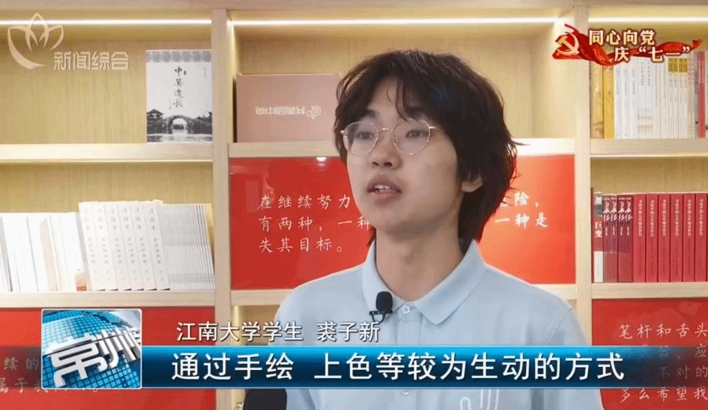 的青年学子用画笔让红色故事跃然纸上,使红色精神从一个个抽象的符号和理念转化为栩栩如生的场景,是一种很好的红色文化传播形式。”常州三杰纪念馆新媒体负责人单韵祎说道。