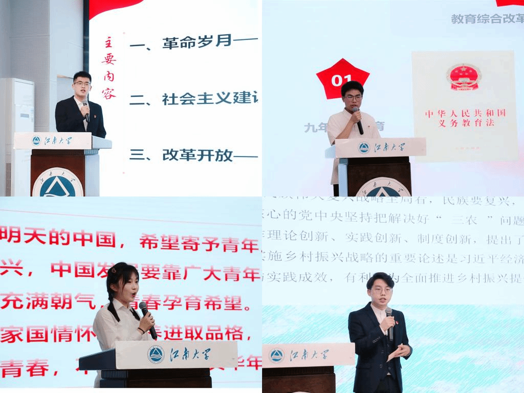 入围决赛的11位选手以学习贯彻习近平新时代中国特色社会主义思想主题教育学习材料为重点,从脱贫攻坚、科技创新、环境保护、民生保障等不同角度切入,依次展开微党课演讲。他们当中,有的讲述党的艰苦奋斗史,为在场师生展现了一段波澜壮阔的红色岁月;有的以乡村振兴为出发点,结合个人亲身感悟为大家分享走进乡村基层的脱贫攻坚故事;有的紧跟时事,以国产大飞机C919成功进行商业飞行为点,深入发掘成功背后无数中国科学家为之不懈努力的艰辛历程。选手们精彩的演讲,以微视角、大讲台的形式生动诠释了“感悟思想伟力,凝聚奋进力量”这一主题,深入浅出,将党的创新理论以通俗易懂、贴近实际的方式呈现,以小切口呈现大主题,用小故事诠释大情怀,形象地展现了新时代物联学子的昂扬风采。