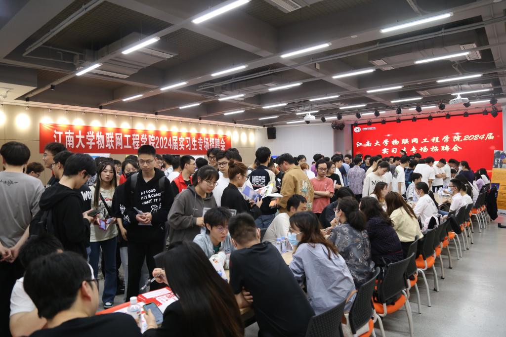 本次招聘会吸引了卡特彼勒、博创、威孚高科、上能电气、三一重机、卓胜微、中船重工奥蓝托、造梦者等22家优质企业参会,为2024届毕业生提供实习岗位100余个,需求人数达500+。招聘岗位涵盖电气工程、电子信息、自动控制、集成电路、软件工程等专业领域,与学院所有专业高度匹配。通过实习生招聘双选,加强企业与学生的互动交流,为2024届毕业生招聘提前锁定人才。招聘会现场人头攒动、秩序井然,吸引了500余名物联学子前来应聘。