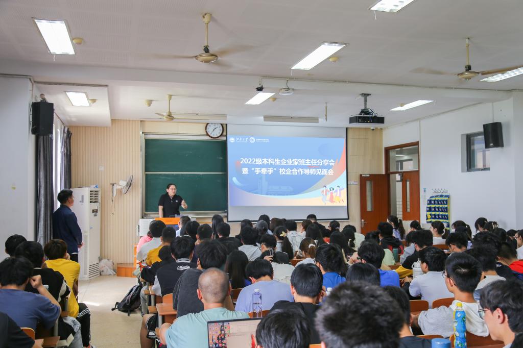 在1A415举行2022级本科生企业家班主任分享会暨“手牵手”校企合作导师见面会。av片