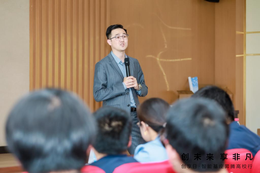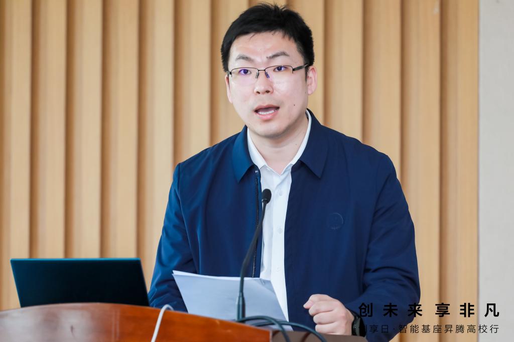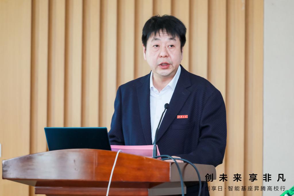 基于“智能基座”项目当前合作的情况和取得的阶段性成果出发,强调与大学合作开展人才培养是华为的责任,也是未来持续成功的保障,希望通过深度产教融合合作把“智能基座”基地育人项目做深做实,为产业、为国家培养高素质创新型人才。