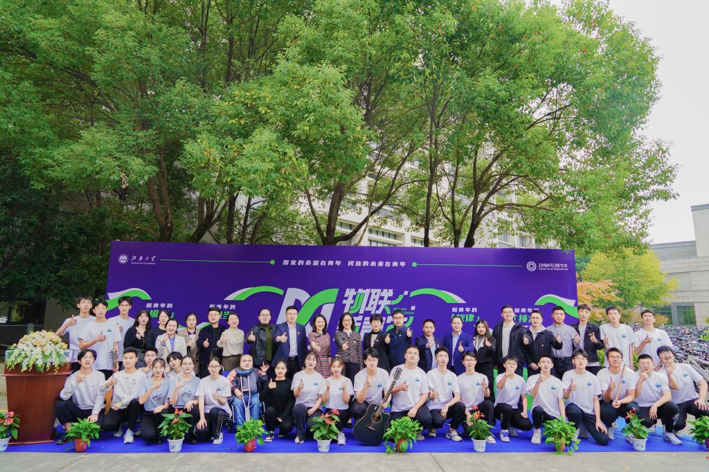 随后,“物联新青年”代言人张立冬发言。他回顾了在校期间与众不同的学习经历,先天性肢体残疾使他的人生愈发艰难,但在学校领导、师长的培养关怀下,他不仅没有因身体残缺而得过且过,反而在专业成绩、科创竞赛、学生工作等方面都取得了丰硕成果。如今他已成为世界五百强企业的高级工程师,秉承“唯实”院训,继续在工作岗位上兢业奉献。他“心有凌云志,鹰击长空时”的励志故事及展现出的自强不息的精神面貌赢得了在场的阵阵掌声。
