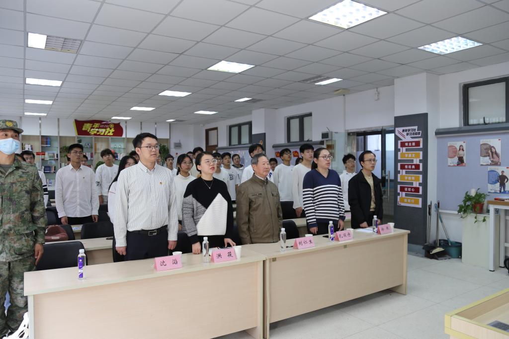 团委书记洪筱、辅导员沈滔、班主任徐银等参加活动。活动在昂扬的团歌中开始。