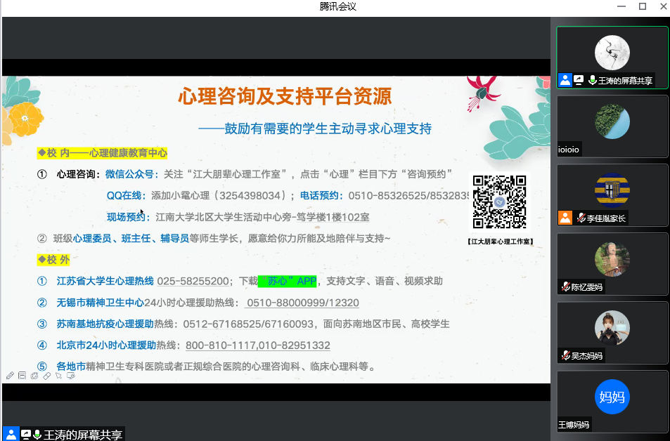 育人体系和学科专业发展,建立家校沟通联系枢纽,形成家校育人合力,9月4日下午,学院举行2022级本科新生云端家长会。学院党委副书记孔丽丹、心理辅导员张圆、2022级新生辅导员王涛、曾磊出席会议,来自全国各地的400余名新生家长参加会议。