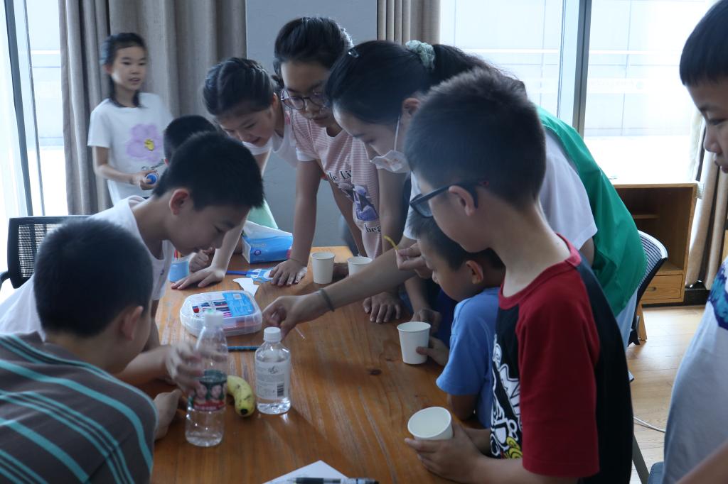 团队成员李琨莹、齐子时、薛羽辰、张思源分别为苏州市高新区文体中心青少年活动中心暑托班的孩子们,上了生动活泼的节水课。团队成员通过播放《被污染的水下世界》视频、展示被污染的海水生物等方式,激发孩子们的探索欲,使他们认识到水资源保护的重要性。接着,通过讲解中国水资源现状、水污染的危害、污水怎么处理等内容,帮助孩子们积累了丰富的知识,逐渐形成绿色环保的责任意识,使孩子们受益匪浅。