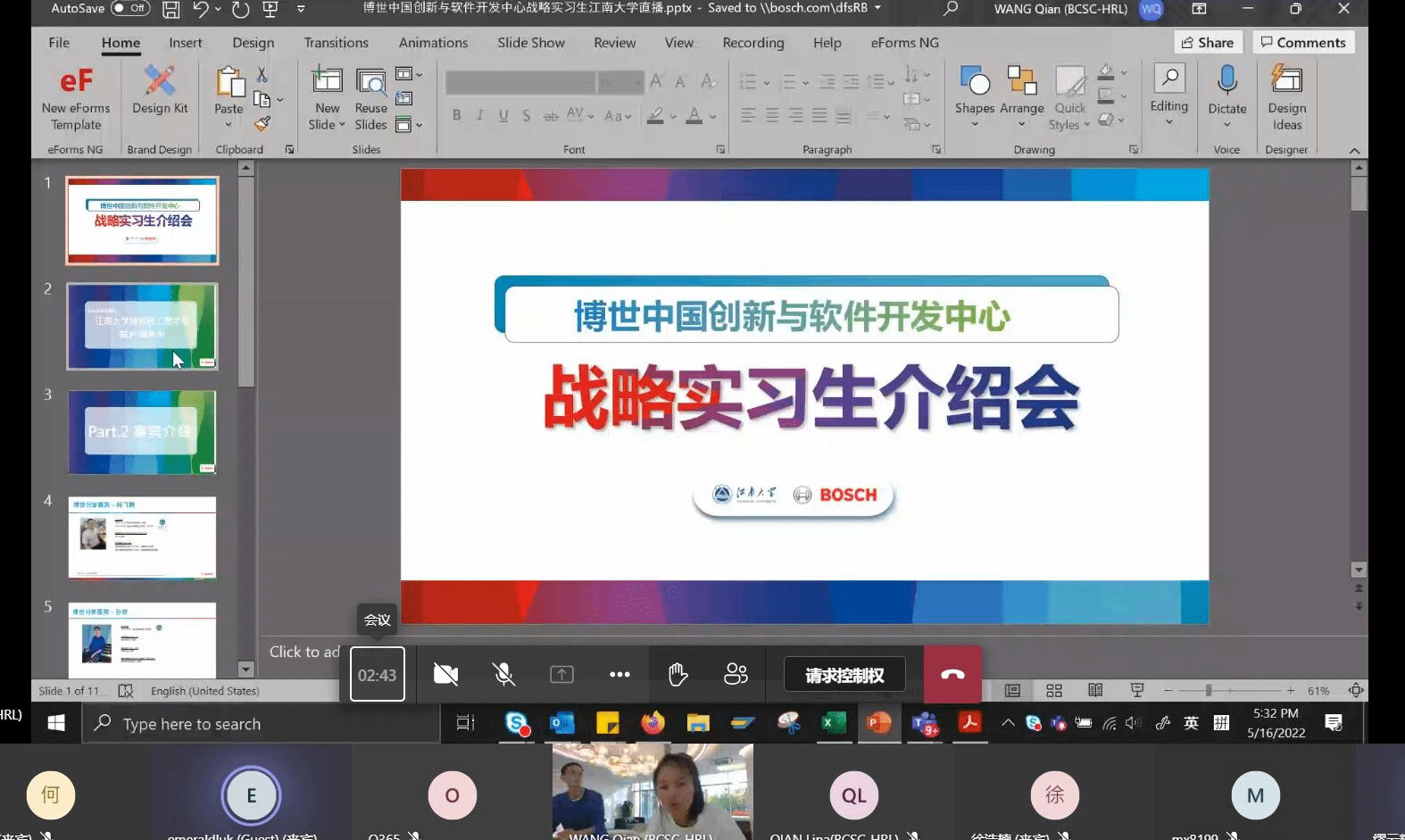 为进一步做好校园封闭管理期间2022届毕业生就业和2023届学生实习工作,av片 扎实推进“访企拓岗”系列行动,院长谢林柏前往博世中国创新与软件开发中心走访调研,积极推荐毕业生,开拓优质就业渠道和就业岗位。继实地走访带回优质岗位后,5月16日晚,谢林柏通过云直播方式向全校学生推荐博世中国创新与软件开发中心及其提供的战略实习生岗位,活动吸引了来自av片 、人工智能与计算机学院、机械工程学院等200余位同学的积极参与。