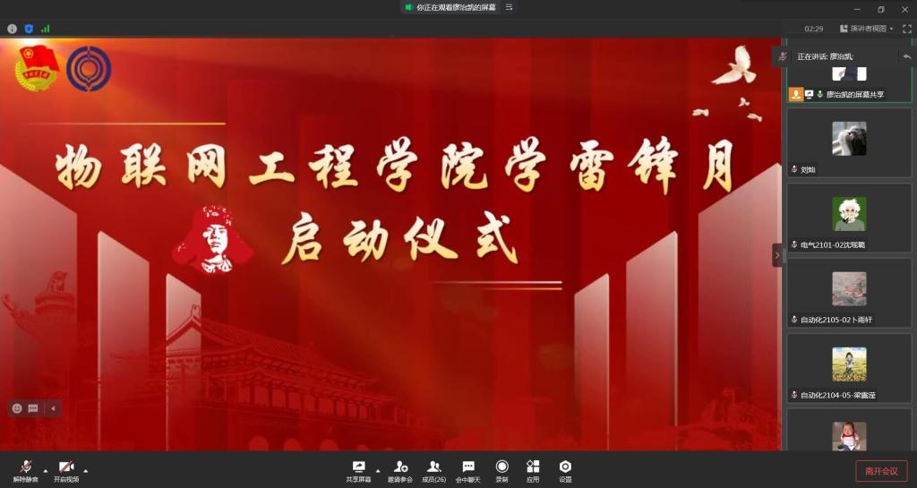 启动仪式以线上方式举办。学院青协主席刘灿带领大家重温雷锋精神,并共同领略93名寒假志愿者响应号召、投身战“疫”志愿服务活动的青春风采。启动仪式上,发布了学院2022年“学雷锋志愿服务月”系列活动,并对重点活动做部署安排和推广介绍,标志着学院“学雷锋志愿服务月”正式启动。