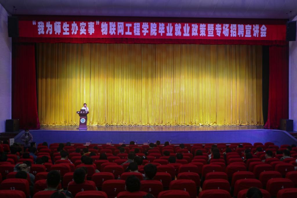 毕业就业政策暨专场招聘宣讲会在文浩馆观众厅举办。学院党委副书记、副院长孔丽丹,学院教务办孙洁,毕业班辅导员侯玉莹、王雪冰出席会议,无锡信捷电气股份有限公司、华勤技术股份有限公司等企业的人事部门代表应邀参加活动,学院2018级全体本科生参加大会。
