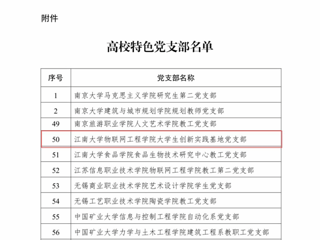 大学生创新实践基地党支部入选江苏高校特色党支部。