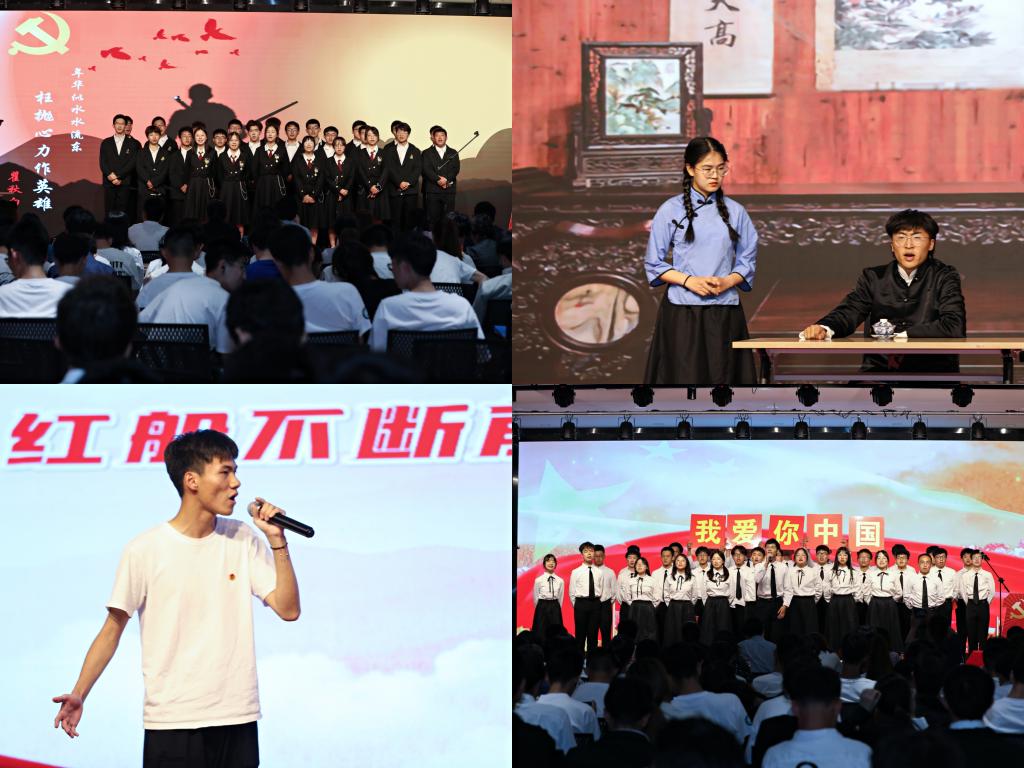 当晚,由学校关工委老同志组成的江南诵读会带来诗朗诵作品《信念永恒》拉开了演出序幕。本次文艺汇演以党史发展脉络为主线,通过“艺术党史”的独特感染力凝聚起物联师生奋进新征程的磅礴力量,共包含三个篇章。《寻访初心路》篇生动展现了波澜壮阔的百年奋斗之路,将观众带入了风雨激荡的岁月中。合唱《百年恰是风华正茂》以Rap与合唱相结合的方式,讲述中国共产党百年发展历程;话剧《俯仰无愧天地人》以演绎抗日战争背景下京剧名角云怀生誓不做亡国奴的感人事迹,致敬为抗战做出贡献的无产阶级革命者们。
