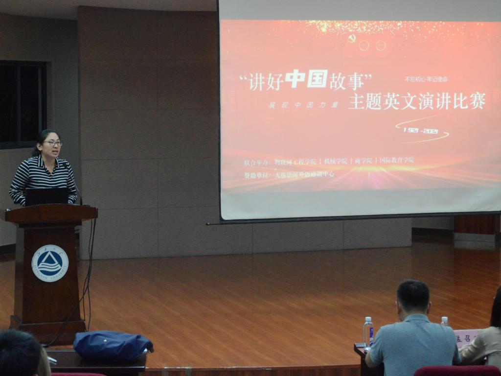 党委副书记、副院长孔丽丹,无锡朗阁外语培训中心 校长吴哲旻本次活动,共有来自全校五个学院的15位选手进入决赛,来自全校的300余名观众来到活动现场。