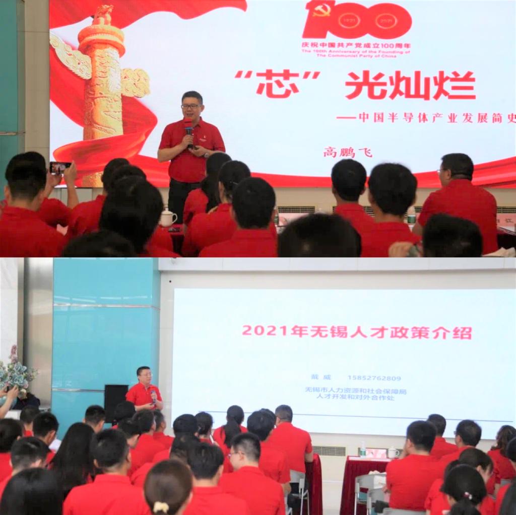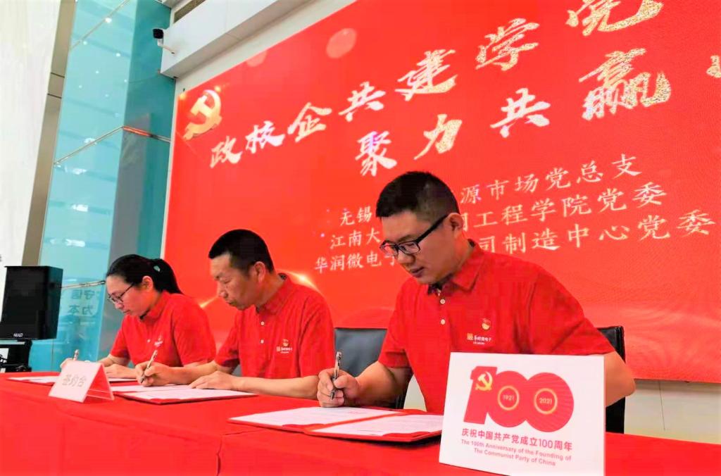 党委与华润微电子有限公司制造中心党委、无锡市人力资源市场党总支共同举办“政校企共建学党史 聚力共赢芯未来”献礼建党100周年学习教育活动。无锡市人力资源和社会保障局人才开发和对外合作处处长戴威、人力资源市场党总支副书记白江、副主任王振华,av片