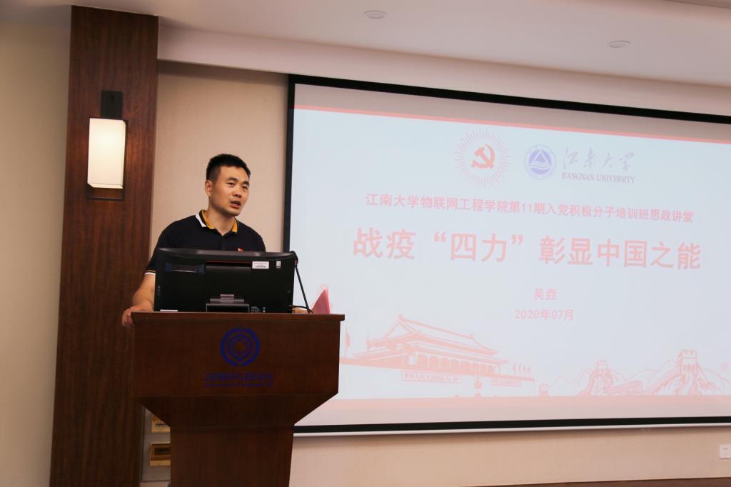 开班仪式结束后,吴垚以“战疫‘四力’彰显中国之能”为题为全体学员讲授第一次思政课。他以中国共产党国际宣传片及人民网理论专栏“中国共产党为什么能”、“马克思主义为什么行”、“中国特色社会主义为什么好”三篇文章为导引,提出疫情防控这场大考充分展现了中国共产党领导的显著优势。并通过解析众志成城抗击疫情的磅礴力量,从内力、威力、合力、潜力四种力量深刻讲述了制度优势、科技实力、人民响应和青年奉献等方面所展现出了中国之能。