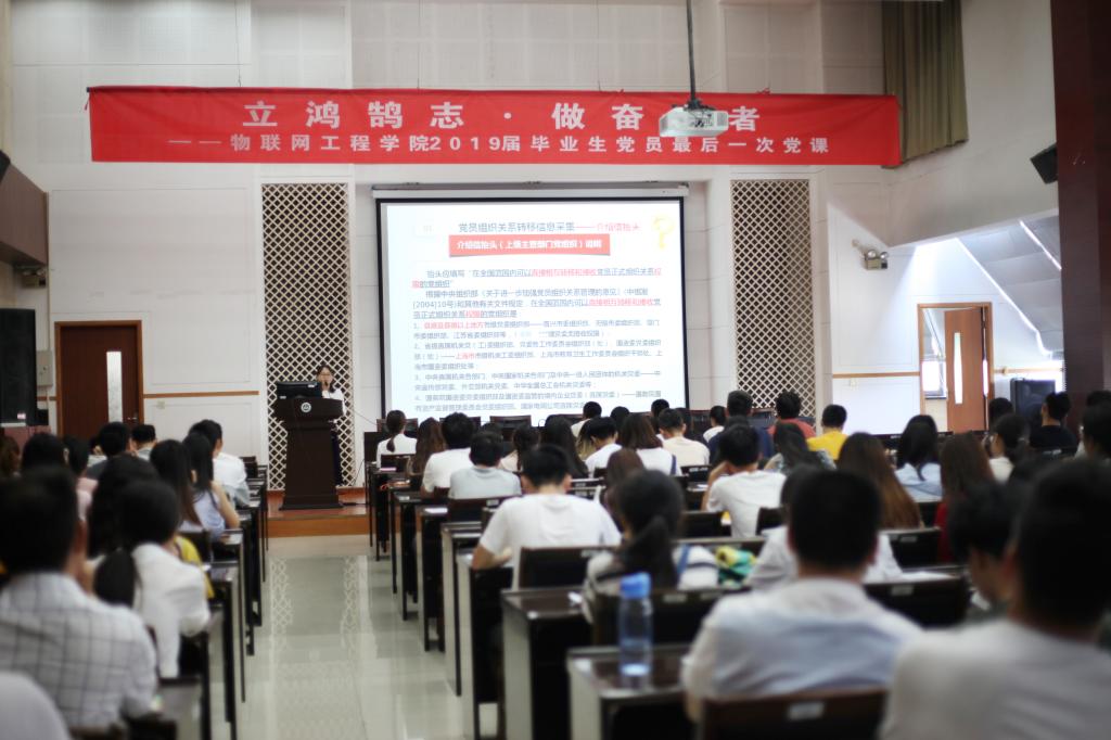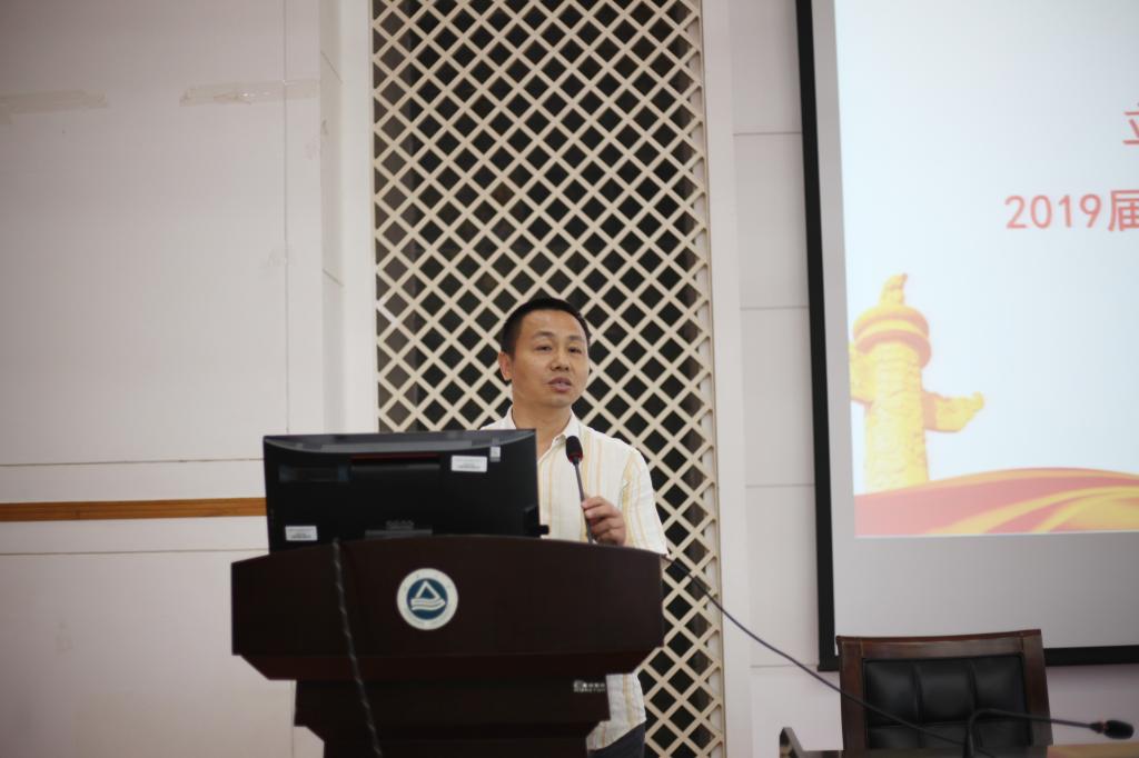 “立鸿鹄志 做奋斗者”2019届毕业生党员最后一次党课在学院D328会议室隆重举行。学院党委副书记耿向阳,党委秘书孙小芳,分团委书记吴垚,毕业班辅导员金钰锁、何倩楠老师出席了本次仪式。大会由学院辅导员赵丽敏主持。