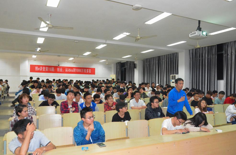 于一教B103成功开展了第18期创e讲堂活动。本次活动邀请了优秀校友栾凯作为嘉宾主讲,主题为“从idea到1000万有多远”。栾凯毕业于我校工商管理专业,是一名成功的连续创业者,现任无锡跑吧智能科技有限公司CEO。