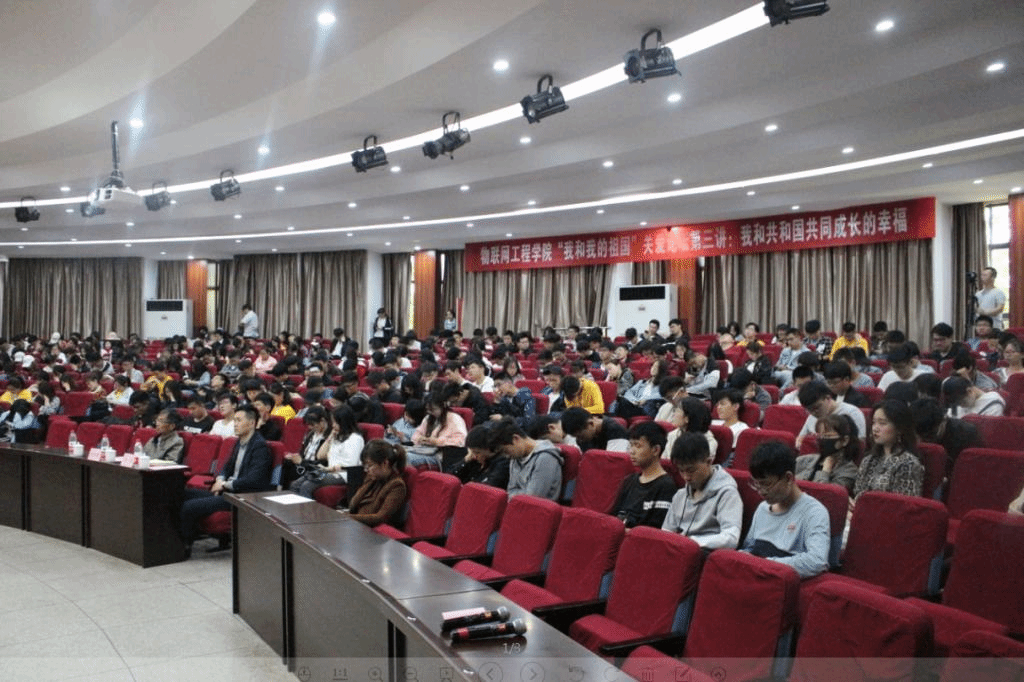 “我和我的祖国”关爱论坛第二讲在北区大学生活动中心音乐厅隆重召开。关工委老师赵曾贻、刘营生,物联网学院分团委书记吴垚,辅导员赵丽敏、王志顺等老师受邀出席了本次论坛。论坛由吴垚老师主持。
