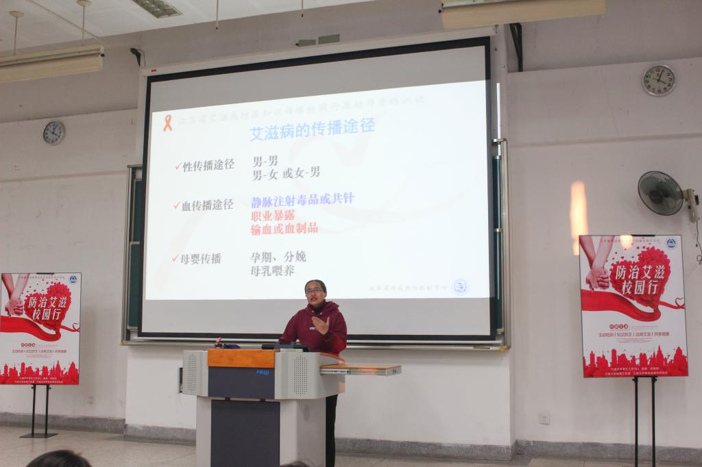 首先,由吴迪老师对到场的学子表示热烈欢迎并希望大家能将今天所学到的知识传递给身边的人。随后,她邀请沈力晔医生上台做艾滋病防治知识传播校园行讲座。