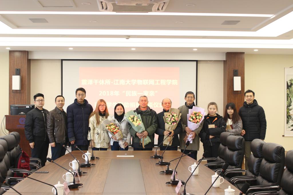 在资助捐赠仪式上,军休所的领导为四位少数民族同学颁发了“民族一家亲”助学金,张发海特意准备了笔记本并赋诗一首寄语四位同学。他勉励同学们能够珍惜机会、好好学习,早日成才,同时邀请同学们到震泽军休所参观。四位同学为表示感谢,向与会的军休所的领导献上精心准备的鲜花并合影留念。