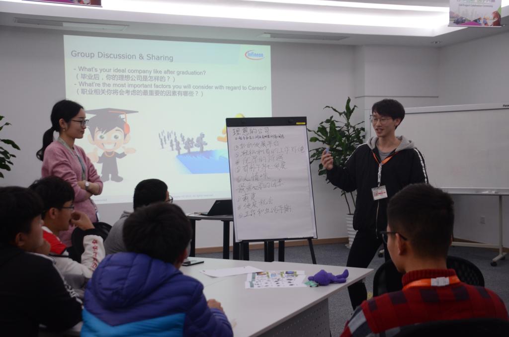 全体参观人员于下午1:30到达英飞凌科技(无锡)有限公司,由人力资源部专员朱玉兰女士接待营员到会议室,详细地为营员们介绍了其以质量为先导的av片,承诺、合作、创新、行动的企业价值观以及公司在半导体行业的地位与优势和对于不同产品多样的封装形式与测试流程。公司还特别安排了校友面对面交流分享会和交流互动活动,三位毕业于av片