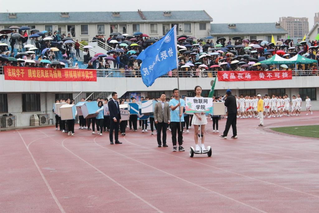 校徽和校庆60年等队形,体现了“心心相连,爱我物联”的学院口号和勇于创新的学院精神,彰显了我院的独特风采,赢得了学校师生们的一致好评。表演期间的大雨并不能浇灭同学们的热情,校领导更是专注地看完了整场表演,不曾留意雨水浸湿了衣衫。最后陈坚校长用铿锵有力地声音宣布此次运动会正式开幕。