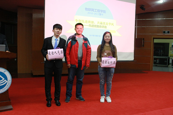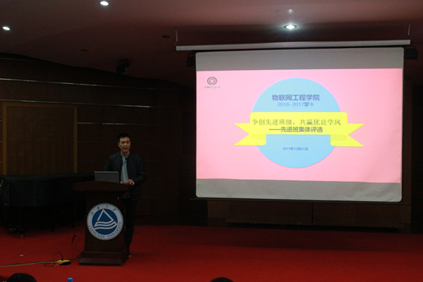 党委副书记、副院长耿向阳老师致辞。他强调,班级是大学生学习生活的基本组织形式,是大学生自我教育、自我管理、自我服务的主要组织载体,希望同学们积极行动起来,为我院学风建设做出新的贡献。接着,主持人介绍评选规则,各班进入参展环节:通信1502班的“阿信访谈”以访谈形式展现班级风貌,令人眼前一亮;自动化1604班更是将仙侠武林搬上舞台,以三位“高手”讲述班级的优秀之处,大放异彩;通信1501班充分体现本专业特色,利用本班现场展示代表与“远程连线场外‘记者’”的形式,将班级风采立体地描绘;物联网1604班最是出彩,模仿“暴走大世界”以大爆料直击人心,赢得观众阵阵喝彩。随后,吴垚老师对各班表现做出精彩点评。最后,经过紧张的分数核算,最终评选出物联网1604班等6个班级为先进班集体,各位嘉宾为获奖班级颁发奖品以资鼓励。