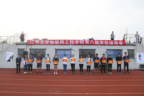 伴随夕阳西下,运动会接近尾声。在工作人员的紧张统分后,分团委书记吴垚老师公布了此次运动会积分第一的班级物联网1703,并为各奖项获得者颁奖。
