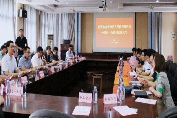 在学科建设、科学研究、技术创新、人才培养和国际交流等方面的优秀成果。随后,宿豫区的领导们带来的一段宿豫区宣传片——《“豫”见精彩》,展示了新常态下宿豫经济、社会、文化和生态环境的新发展以及宿豫经济转型发展新优势。在短片的基础上,仲崇东副区长还向校方与会领导及教授代表介绍了宿豫区目前经济社会发展的情况和科技人才政策,为双方发掘合作切入点指明了方向。