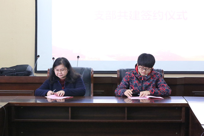 随后,主持人宣布签约仪式正式开始,孙子文老师与刘孟璐同学代表双方党支部进行签字,并交换协议书,从此支部结对共建,党员普遍联系。双方党支部通过定期开展党建交流、沟通互访、社会实践、主题党日活动、结对帮扶、文体联谊等活动,以共建促党建,以共建促了解,以共建促合作,以共建促发展。